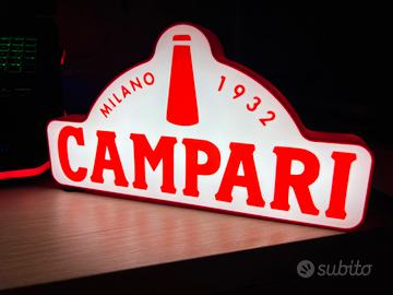 Lampada Lightbox Campari Milano 1932, realizzata con tecnologia di stampa in 3D in materiale PLA, illuminata con luci a LED alimentate con cavo USB e pratico interruttore on/off