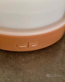 Lampada diffusore di essenze, (anche per aiutare durante il raffreddore per esempio) o per profumare una stanza. Si riempie con acqua ed essenze oppure vuota solo per creare atmosfera di luce. Luce notturna bambini.