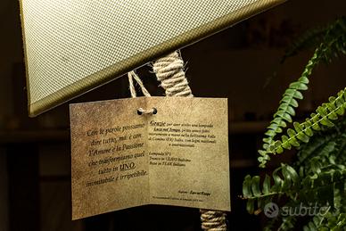 Le lampade sono tutte realizzate interamente in legno di ulivo italiano, con base in teak indiano. Tutto è riportato in un apposito bigliettino che richiama il tema di questa serie di lampade "Luce nel Tempo". È proprio questo concetto che da vita allo stile di questa serie di lampade, che le rende perfette sia per ambienti montani sia per ambienti più urbani. Il legno è lavorato e ricoperto da un particolare olio di fondo, che rende il legno impermeabile e completamente sicuro dalle intemperie esterne, infine viene passato il lucidatore protettivo. Le lampade di questa collezione sono tutte numerate a laser, riportanti mese, anno di costruzione e firma dell'artista, ciò rende ogni pezzo unico nel suo valore. I paralumi sono inclusi ma sono solo a scopo illustrativo, sono intercambiabili per lasciare libera scelta sullo stile e sul tipo di colore che si preferisce.