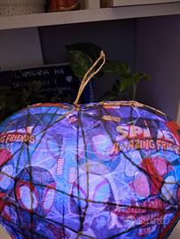 ideale come punto luce per la cameretta del bambino.realizzata in carta e corda. possibilità di appenderla .oppure classica da comodino.realizzo su ordinazione.consegna a mano su milano. possibilità di scegliere il soggetto della lampada.