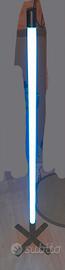 Lampada tubo luminoso con piedini di appoggio per posizionamento verticale. Colore blu fluorescente, effetto "spada laser". Primi anni 2000.
