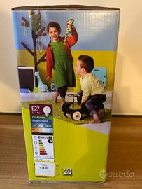 Vendo NUOVA causa non utilizzo lampada cameretta amico completa di luce nella sua confezione originale. In legno color giallo/blu.