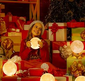 Fantastica Lampada lunare LED con supporto - Luce calda, luminosità regolabile, alimentata a batteria, ideale per regali di compleanno, Halloween, Natale e decorazioni per feste di Natale, decorazioni lunari, lampada da tavolo, luce notturna, lampada per camera da letto, luce per camera da letto