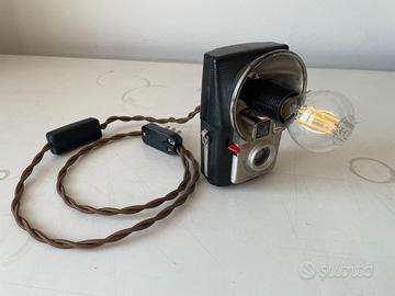 Vendo lampada realizzata con una macchina fotografica vintage marca Kodak, completa di porta lampadina (E14), cavo elettrico intrecciato e rivestito con tessuto, interruttore (on/off) e spina elettrica piatta da 16A