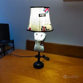vendo lampada da tavolo vintage MAISON DU MONDE modello MANNEQUIN D3 VOUGUE base artigianale in legno e tessuto cm67h.diametro cm28 in perfette condizioni.