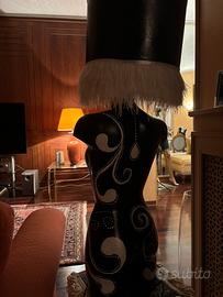 Manichino mezzo busto trasformato in lampada interamente dipinto a mano.