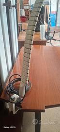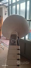 Lampada da tavolo a morsetto; stelo flessibile, metallo ricoperto con vertebre di plastica. Diffusore orientabile in metallo laccato.
