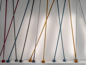 NUOVA IN VENDITA LAMPADA Elastica lamp DI Martinelli Luce. ELASTICA È UNA LAMPADA INNOVATIVA PROGETTATA DA Studio Habits PER Martinelli Luce, CARATTERIZZATA DA UNA STRISCIA IN TESSUTO ELASTICO CHE COLLEGA SOFFITTO E PAVIMENTO. LA LUCE LED INTEGRATA È DIMMERABILE E SI CONTROLLA CON UN SEMPLICE GESTO: TIRANDO O MUOVENDO LA STRISCIA SI ACCENDE E SI REGOLA L’INTENSITÀ. OGGETTO DI DESIGN INTERATTIVO E CONTEMPORANEO, CHE UNISCE LUCE, MOVIMENTO E SPERIMENTAZIONE SENSORIALE.