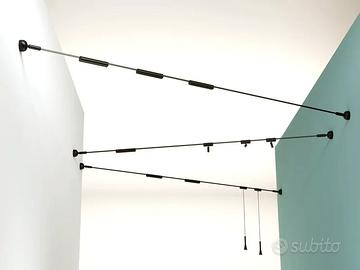 NUOVA IN VENDITA LAMPADA SCOIATTOLO DI Martinelli Luce. SISTEMA DI ILLUMINAZIONE CONTEMPORANEO E DINAMICO, PENSATO COME UNA RETE LUMINOSA FLESSIBILE CHE “SI MUOVE” NELLO SPAZIO. STRUTTURA BASATA SU UN CAVO A 4 POLI CHE FUNGE DA SUPPORTO E ALIMENTAZIONE, PERMETTENDO DI POSIZIONARE I CORPI ILLUMINANTI IN MODO LIBERO E PERSONALIZZATO, ANCHE TRA PARETI DIVERSE. ELEMENTI LUMINOSI A LED ORIENTABILI O FISSI, AGGANCIABILI LUNGO IL CAVO PER CREARE COMPOSIZIONI LUMINOSE SEMPRE DIVERSE E ADATTABILI ALLO SPAZIO. IDEALE PER AMBIENTI RESIDENZIALI MODERNI, OPEN SPACE, UFFICI E PROGETTI ARCHITETTONICI, DOVE LA LUCE DIVENTA UN SISTEMA FLESSIBILE E SCENOGRAFICO. UN PROGETTO TECNICO E INNOVATIVO CHE UNISCE LIBERTÀ COMPOSITIVA, DESIGN MINIMALE E MASSIMA PERSONALIZZAZIONE LUMINOSA.