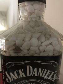 Lampada fatta in casa con bottiglia di jack daniel's è riempita con pietre bianche