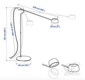 Si può ruotare il braccio e l'inclinazione della testa . Doppia illuminazione : rivolta verso l'alto , più debole, e rivolta verso il basso. Si può regolare l’intensità della luce