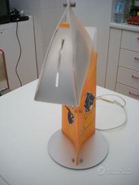 Lampada Mimì di Massimiliano Datti per la ditta di illuminazione Slamp, anni ’90. Made in Italy. E’ costituita da un paralume arancione translucido realizzato in plastica verniciata Opalflex e una base in alluminio. Paralume basculante con altezza regolabile.