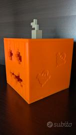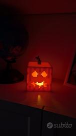 Lampada a tema Minecraft per Halloween, comprensiva di luce led a fiammella con batterie (incluse) . Parete laterale liscia o con disegno fantasmini. Assemblabile senza colla