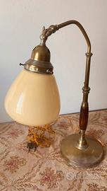 Vendo Lampada Ministeriale da scrivania ottonata e manico in legno, cappello in vertro circa anni ‘30