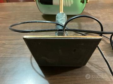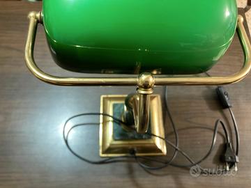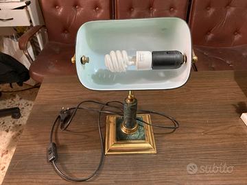 Lampada da scrivania presidenziale con calotta portalampada verde (girevole) perfettamente funzionante risale anni 60. La base della lampada e di 15x15 cm Altezza 38cm, sulla base della lampada si vedono delle macchioline dovuti al tempo