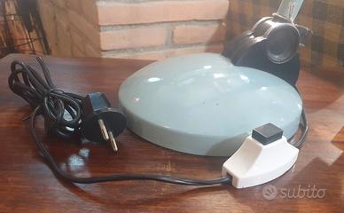 Lampada ministeriale tedesca, anni '40-'50, celeste polvere, asta snodabile sia in alto (cappello direzionabile) che alla base.