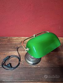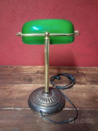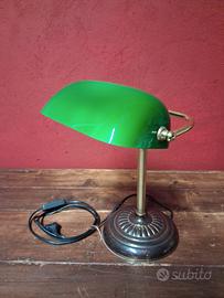 Classica lampada Ministeriale, conosciuta anche come Banker’s Lamp, icona del design nata nei primi del ’900 per studi legali, biblioteche e uffici direzionali.