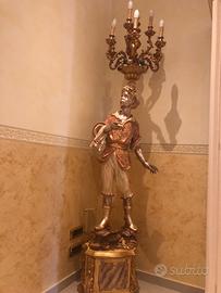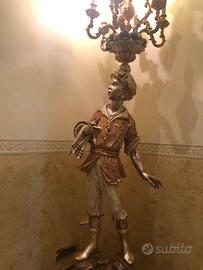 Vendo lampada da terra “Moro veneziano” per arredamento in stile barocco. Finitura foglia oro e argento, parti colorate tutte originali privo di graffi e mai stato restaurato. Condizioni ottime come nuovo. Prezzo 1000€