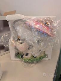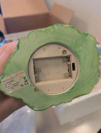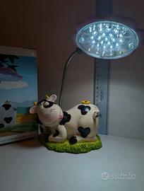 tvalentina13 su vi.nt.ed SOLO SPEDIZIONE, NO RITIRO A MANO. ALTRE FOTO DISPONIBILI SU RICHIESTA. Lampada da tavolo mucca vache LED Brandani con scatola originale, in poliresina con luce funzionante. Funziona con 3 pile batterie AAA (NON COMPRESE). Lampada da comodino decorativa a forma di mucca con braccio flessibile e paralume a fiore con piccola ape decorativa, modello originale Brandani Gift Group, interruttore sul fiore sulla coda. Lampada in ottime condizioni generali, non è mai stata usata ed è stata tirata fuori dalla scatola solo per fare queste foto in realtà, luce LED funzionante, colori vivaci e struttura integra, normali segni di conservazione sulla scatola visibili in foto. Scatola originale e imballo interno presenti. La scatola ha dei leggeri segni del tempo, come da foto, e il polistirolo essendo vecchio è un po' rotto come si vede. Lampada abat jour per bambini e anche per adulti.