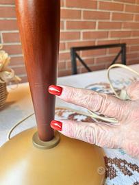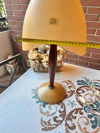 Lampada da tavolo in Murano color albicocca, perfettamente funzionante, utilizzata pochissimo. Peso 3kg e 100 gr. Ottime condizioni, due piccoli graffi come in foto sullo stelo di legno.