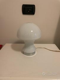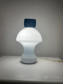 lampada da tavolo vintage in vetro opalino bianco a fungo è stata realizzata in Italia negli anni '80. Questa lampada retrò porterà l'atmosfera dell'Italia spaziale degli anni '70 nella vostra casa. Condizioni eccellenti, nessun danno.