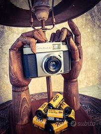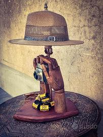 lampada con macchina fotografica vintage con rullini e cappello cowboy 🤠.