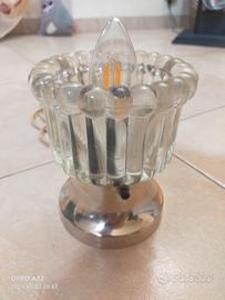 Splendida lampada da tavolo/luce d'atmosfera vintage degli anni '70 di Nils H. Ledung per il suo marchio Ledungs Sweden. La lampada ha un paralume in vetro pressato a coste dalla texture ricca e un bordo a bolle pronunciato. Appoggiata su una base in alluminio color ottone lucido, la lampada proietta una suggestiva luce radiale quando è accesa, ideale come elemento d'accento o come lampada da comodino. Il design cattura un perfetto equilibrio tra l'eleganza moderna svedese e il fascino futuristico.