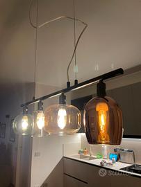 Lampada nuova composta da 4 luci, di vetro e di colori diversi. Stile moderno ed elegante. appena comprato, ben funzionante, ma non si abbina bene allo stile della cucina