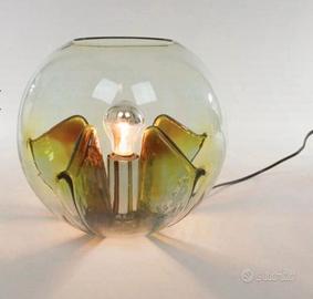 Spettacolare lampada da tavolo in vetro di Murano disegnata da Toni Zuccheri per VeArt, formata da una sfera con pieghe che corrono verso l'interno.Questa è la versione colorata con sfumature che vanno dal giallo al verde e terminano in un bellissimo blu-grigio.VeArt è stata fondata nel 1965 da Sergio Billiotti e Ludovico Diaz De Santillana, quest'ultimo non solo fondatore di VeArt ma anche direttore artistico di Venini.Toni Zuccheri era un designer, un architetto ma soprattutto un artista del vetro. Ha collaborato con le più importanti manifatture di Murano, da Venini a Barovier e Toso, e ha creato sculture in vetro in Italia e all'estero. #artemide#joecolombo#kartell#stilnovo#stilplast#guzzini#murano#spaceage#luceplan#Veart#anni70#luce#castiglioni#sottsass#vintage#memphis#madeinitaly
