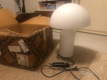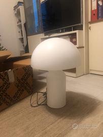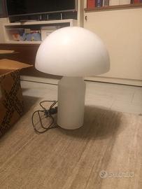 Lampada da tavolo Oluce serie Atollo 237, versione media della serie Atollo creata dal designer Vico Magistretti, vincitrice del Compasso d’Oro nel 1979. Realizzata in vetro di Murano soffiato opalino, ha un’emissione della luce diretta e diffusa. La sorgente luminosa è composta da 2 lampadine LED. Cavo e interruttore nero. In condizioni perfette, usata pochissimo.