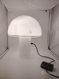 Lampada modello "Onfale Grande" disegnata da Luciano Vistosi per Artemide, completamente realizzata in vetro di murano, possibilità di accendere sopra, sotto o entrambi le luci, con etichetta originale presente che ne certifica l'originalità.