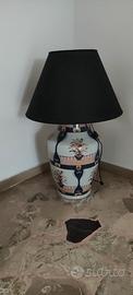 lampada con motivi orientali alta circa 90 cm e con un diametro del cappello di circa 80 cm . può stare su un piccolo tavolino o per terra perché è un elemento che arreda .