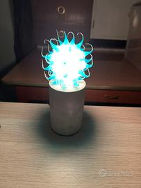 Lampada ornamentale da comodino/scrivania con basamento in resina molto solido e lampadina con ciuffi in gel di colore blu.