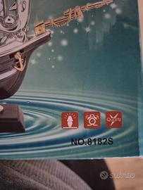 Lampada da tavolo a forma di nave con orologio integrato, modello Victory. - Design ispirato a una nave a vela. - Dettagli in metallo e plastica.