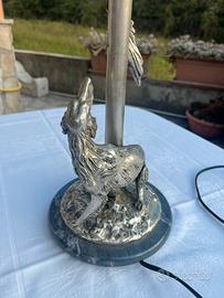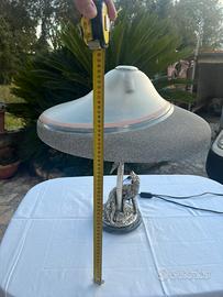 Lampada in argento Ottaviani. Raffigura un cane che guarda un uccello. La lampada è imponente e in vetro di murano in parte satinata. Bellissima ed elegante.