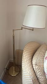 Piantana in ottone con paralume bordato di grosgrain bordeaux.