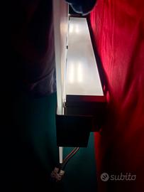 Lampada(OTY LIGHT made in Italy) in vetro citato con fascia orizzontale in acciaio inox in condizioni eccellenti, senza alcun difetto la lampada da parete pesa ben 9 kg, è larga 55 cm spessore del vetro 6 mm, altezza 32 cm, cinque, profondità 8,5 cm. Anche nella parte posteriore, dove sono accolte due lampadine G 24.-26 W LED, due Pin, è formata da due bande di vetro, una superiore e una posteriore sempre acida ma più trasparenti . La lampada è molto semplice da montare a parete: basta svitare due viti laterali posteriori per poter segnare al muro i fori che verranno eseguiti per inserire i tasselli, far passare il filo della corrente che verrà collegato ai due morsetti, mettere in bolla la lampada e reinserire la parte frontale con due semplici viti che basterà stringerle. Non è una lampada da fissare al soffitto ma esclusivamente alle pareti in modo orizzontale o se uno volesse anche in verticale . La lampada è già compresa di due lampadine sopra menzionate a LED nuove. Una lampada design modernariato che può essere collocata sopra il divano in un salotto per creare una certa atmosfera ideale per vedere la televisione, per rilassarsi comodamente e avere un ambiente caldo e confortevole. Questa bellissima lampada è praticamente come nuova senza alcun difetto, ma non viene spedita per la fragilità della stessa. Quindi è possibile venire a vederla e a ritirarla in loco.