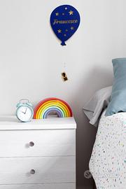 Dolce lampada da muro in legno a forma di palloncino, con il nome inciso che vuoi tu. Perfetta per cameretta o come regalo speciale. Luce calda, stile unico.