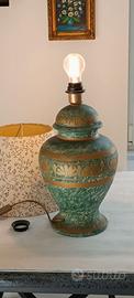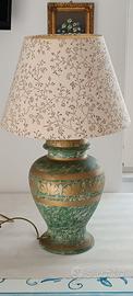 LAMPADA IN CERAMICA COLOR VEDE OLIVA E DISEGNI DORATI FUNZIONANTE COME DA FOTO