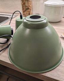 Lampada da soffitto vintage in metallo verde salvia come nuova, nessun difetto. Misure in foto, lunghezza filo 135 cm.