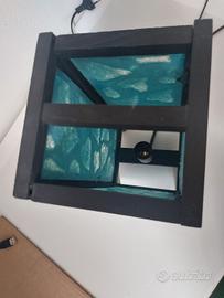Lampada molto particolare artigianale, con cornice in legno nera e lati in carta di riso, con motivo a rilievo cuori color azzurro.