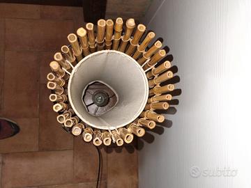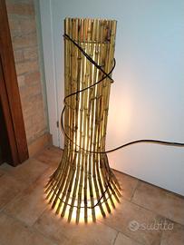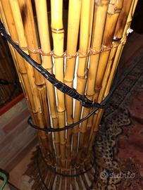 lampada da terra per arredo fatta con canne di bambù funzionante