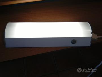 Vendo lampada realizzata appositamente per l'illuminazione di sotto pensili In metallo color silver, completa d'interruttore ON/OFF, cavo di alimentazione e lampada. Monta una lampada neon con attacco G5 da 8W. Alimentazione 220/240v (cavo alimentazione incluso). Dimensioni 35x 12,5 cm