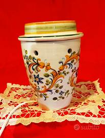 Lampada Pumilene Vapo in ceramica Castelli Facciolini Abruzzo made in Italy come nuova. Ideale per diffondere nell'ambiente oli essenziali e fragranze altezza 15/16 cm diametro la parte sopra più larga 11 cm