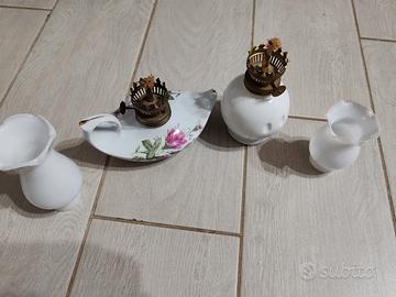 Piccoli lampadi a petrolio, olio Vintage in porcellana bellissimi per soprammobile. Tutti due 25 euro