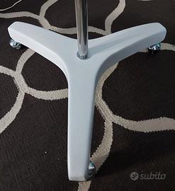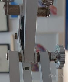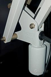 Lampada Naska Loris design di Jac Jacobsen, in questa versione con bracci da 30 cm, completa di piantana tripod con ruote sferiche cromate, in buone condizioni con segni di utilizzo, Naska è la lampada da scrivania per eccellenza, l’originale capostipite di tutte le lampade da tavolo con braccio bilanciato a molle. Un oggetto senza tempo, adatto sia per gli spazi domestici che per quelli dedicati al lavoro. In precedenza chiamata Luxo prese il nome attuale Naska Loris, dallo stile industriale sempre attuale è prodotta tutt'ora da Fontana Arte dopo la sua acquisizione negli anni '90. Jac Jacobsen (1901-1966) è il papà della Luxo, poi divenuta Naska Loris, la famosa lampada del 1937 diventata un’icona del design tanto da essere anche mascotte della celebre casa di produzione Pixar fin dal 1986. Lampada ‘ sbarazzina’ ed allo stesso tempo un archetipo? sveliamo la legge matematica alla base di tutte le lampade con braccia bilanciate a molle. Si tratta dell’applicazione del cosiddetto “quadrilatero articolato”, in cui la somma delle lunghezze dell’asta più corta e di quella più lunga è minore o uguale alla somma delle lunghezze delle altre due aste. In realtà il braccio di questo genere di lampade è formato da due parallelogrammi articolati accoppiati, cioè da due quadrilateri articolati in cui le aste opposte hanno uguale lunghezza, e di conseguenza restano sempre parallele tra loro. Ecco perché la lampada in questione si può spostare in alto-basso e avanti-indietro senza modificare il riflettore che si muove sempre parallelamente a se stesso.