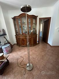 Lampada in metallo argentato con due luci, una suoeriore e una orientabile intermedia. Buone condizioni, parzialmente funzionante (la luce superiore va sostituita)