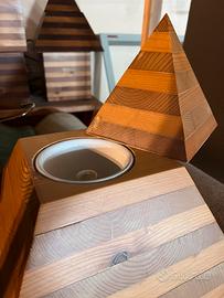 Lampada a forma di piramide degli anni ‘90 fatta in legno Apribile per far uscire la luce come si vede in foto Perfette condizioni