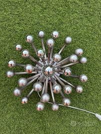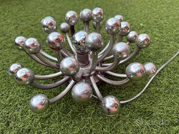 Lampada pistillo per Valenti anni 70 studio Tetrarch diametro 30 cm, colore argento, riporta dei segni di usura e in alcune parti di vernice.