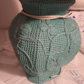 Lampada verde con paralume decorato
